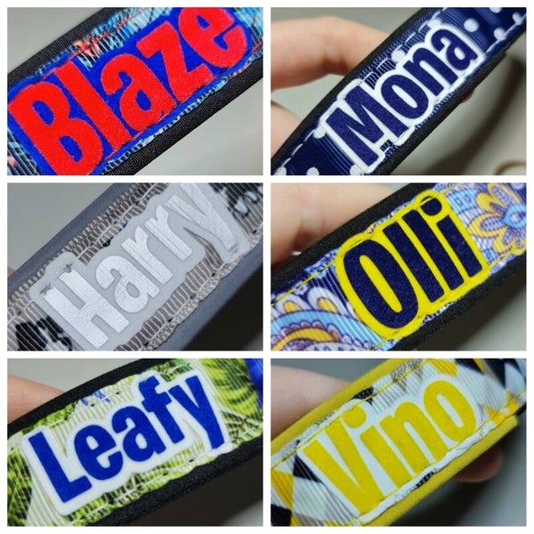 Handgemaakte halsband, afgewerkt met een haarafstotende fleece. Mag in de wasmachine op 30°C, mag niet in de droogkast.